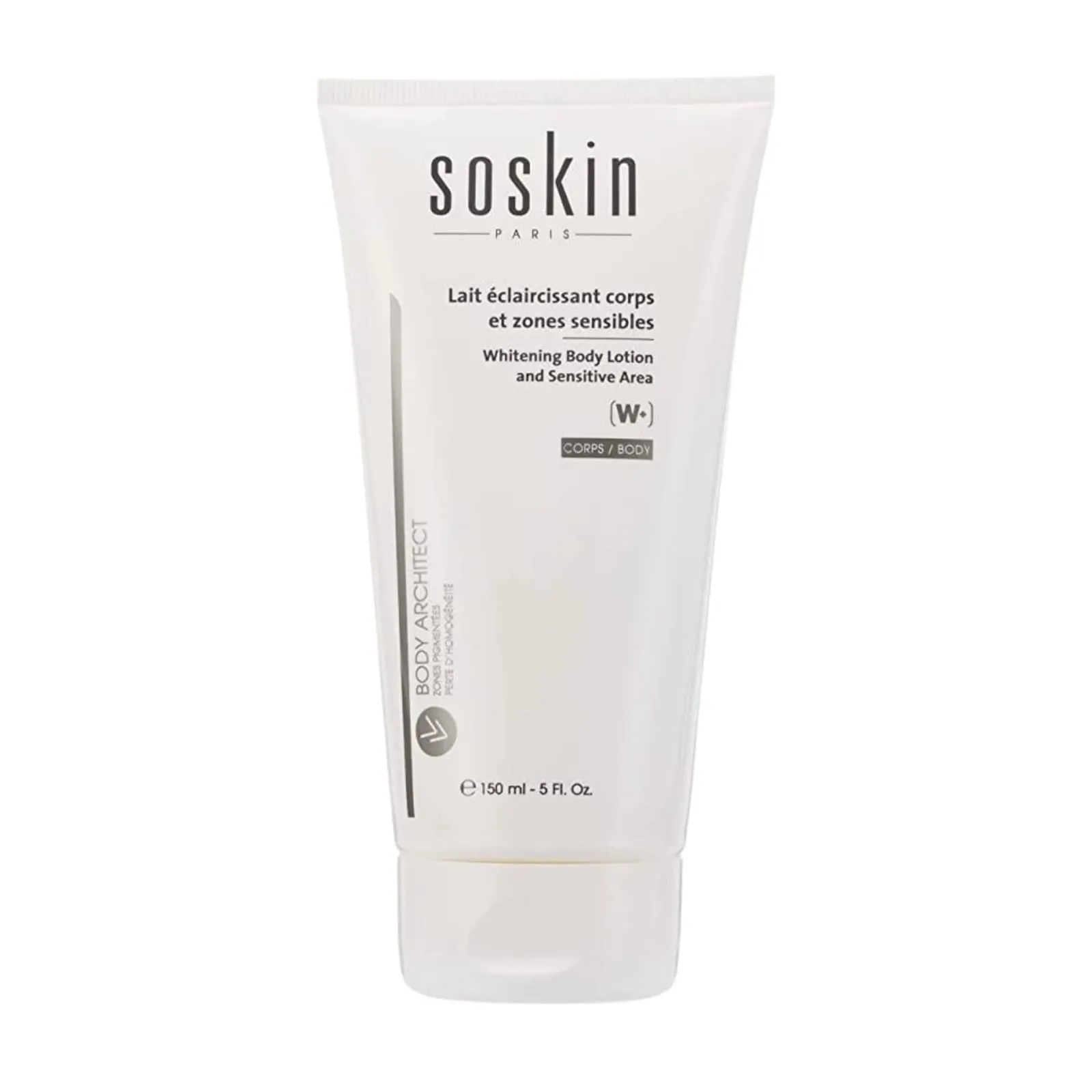 يتميز كريم سوسكن لتفتيح المناطق الحساسة soskin whitening body lotion بتركيبة مميزة تحارب البقع الداكنة والتصبغات في البشرة وتعيد للجلد ليونته ونعومته كما يعمل soskin كريم تفتيح البشرة whitening body lotion على ترطيب المناطق الحساسة لتظهر بشرتك مشرقة ونضرة . يتميز لوشن سوسكن للتفتيح بقوام كريمي خفيف يتغلغل على الفور ليفتح البقع والتصبغات ويحد من ظهورها من جديد على سطح البشرة. لوشن تفتيح البشرة من سوسكن غير مناسب للحامل والمرضع ، كما يوضع على الجسم فقط ولا يستخدم للوجه، كما أنه مناسب لجميع أنواع البشرة عدا الحساسة والمتهيجة