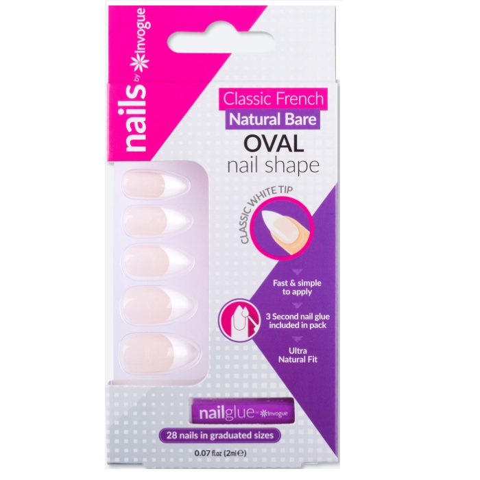 أظافر صناعية ذات مظهر طبيعي مع طرف بيضاوي الشكل مع لون أبيض كلاسيكي تتميز بلون طبيعي، مما يجعلها مثالية للإستخدام في النهار والمساء فهي تحتوي على 28 مقاس للأظافر وصمغ للأظافر الذي يجف في 3 ثوان فقط