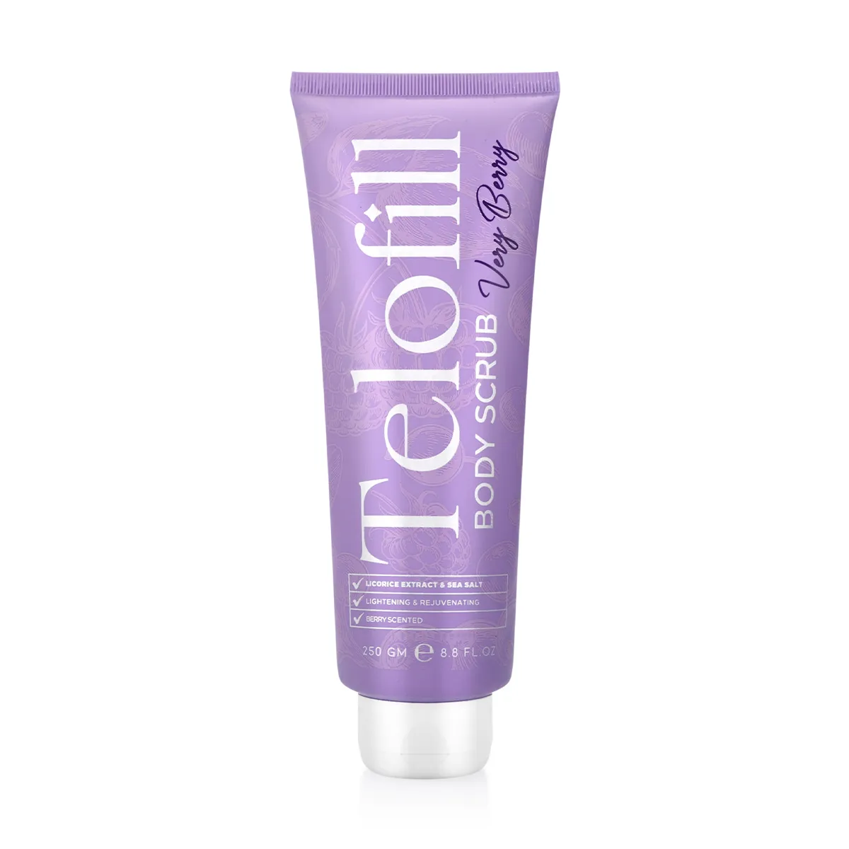 مقشر الجسم Very Berry من تيلوفيل يقدم تجربة تقشير منعشة مع عبير التوت اللذيذ. غني بمستخلص العرقسوس لتعزيز إشراقة البشرة وملح البحر لتقشير لطيف وفعال، يعمل هذا المقشر الفاخر على إزالة خلايا الجلد الميتة، ليترك بشرتك ناعمة، منتعشة، ومشرقة.