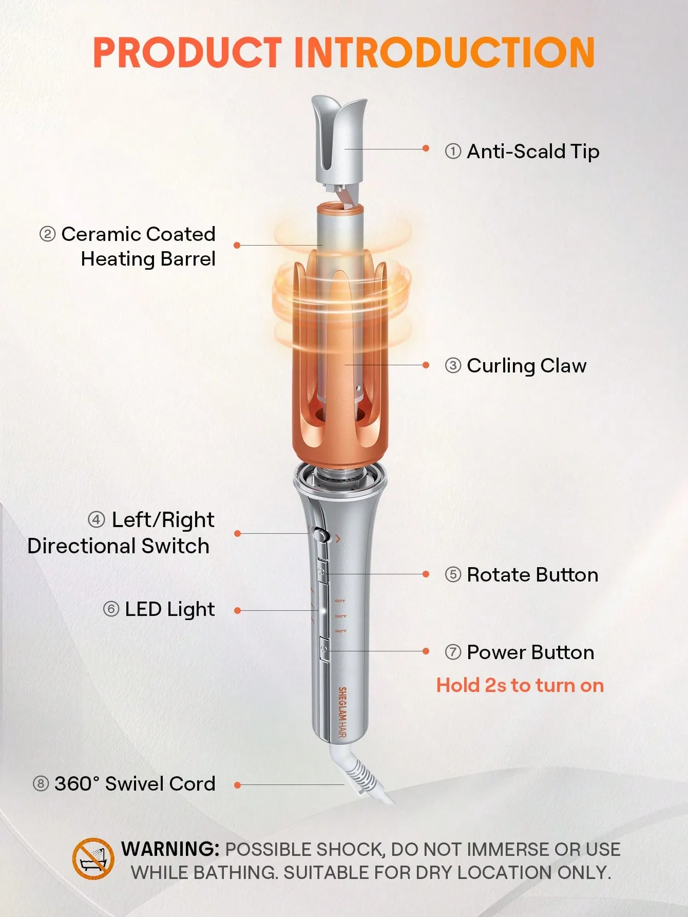 This hair-curling device is designed to be beginner-friendly, featuring a one-button automatic curling mechanism. All you need to do is: