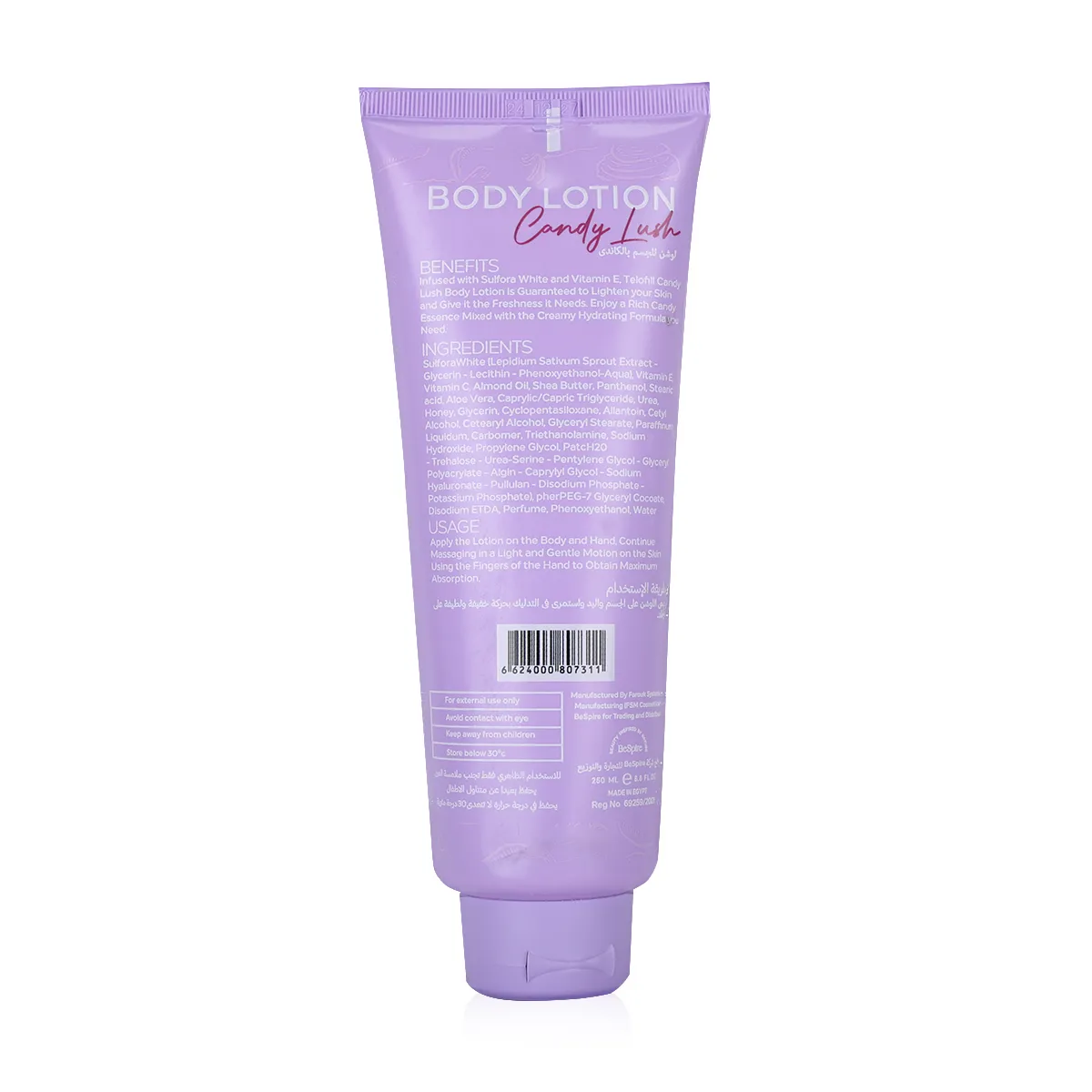 Telophil Candy Lash Body Lotion offers a luxurious and enticing hydration experience with a delightful candy-inspired fragrance that refreshes the senses. Enriched with Sulfora White to help brighten and illuminate the skin, and Vitamin E for deep nourishment, this premium lotion absorbs quickly, leaving your skin soft, moisturized, and radiant all day long.