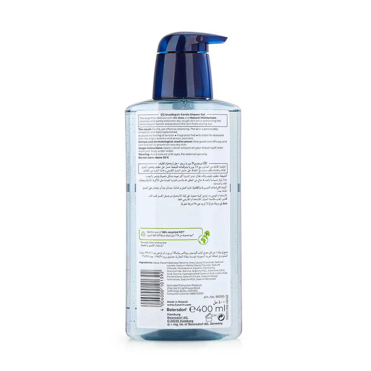 Eucerin UreaRepair 5% Body Wash is a gentle cleanser designed for very dry and rough skin. It cleanses the skin without causing dryness and helps provide deep hydration thanks to its content of 5% urea and natural moisturizing factors. It supports the skin’s natural barrier while leaving it noticeably softer and more flexible.