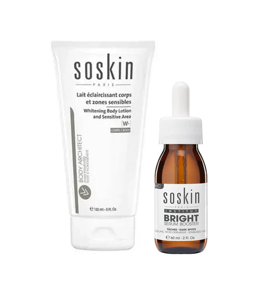 يتميز كريم سوسكن لتفتيح المناطق الحساسة soskin whitening body lotion بتركيبة مميزة تحارب البقع الداكنة والتصبغات في البشرة وتعيد للجلد ليونته ونعومته كما يعمل اللوشن whitening body lotion على ترطيب المناطق الحساسة لتظهر بشرتك مشرقة ونضرة . يتميز لوشن سوسكن للتفتيح بقوام كريمي خفيف يتغلغل على الفور ليفتح البقع والتصبغات ويحد من ظهورها من جديد على سطح البشرة. لوشن تفتيح البشرة من سوسكن غير مناسب للحامل والمرضع ، كما يوضع على الجسم فقط ولا يستخدم للوجه، كما أنه مناسب لجميع أنواع البشرة عدا الحساسة والمتهيجة