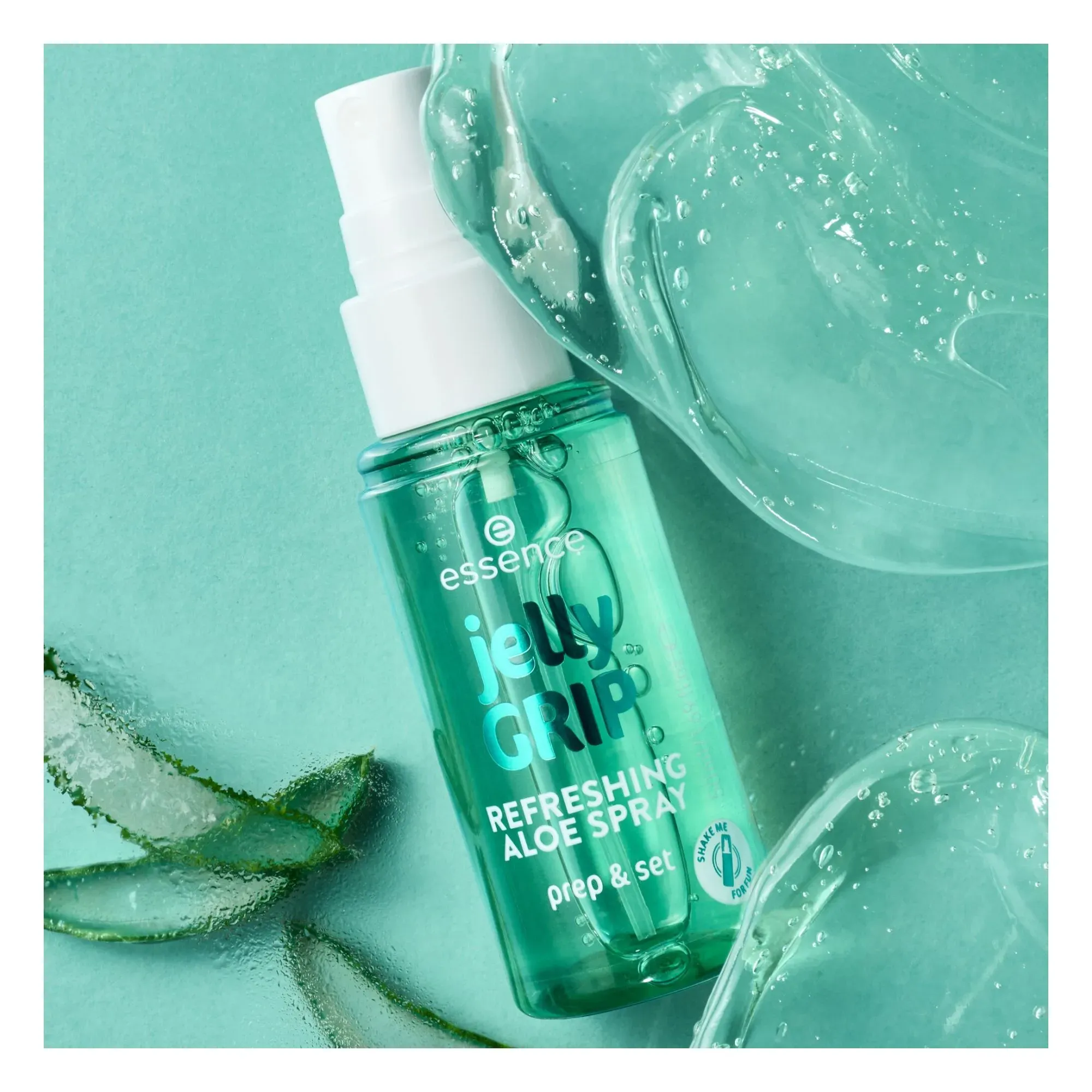رذاذ Jelly Grip Refreshing Aloe من Essence هو منتج 3 في 1 يمنح بشرتك الانتعاش، والترطيب، والتحضير للمكياج في خطوة واحدة فقط، مع تثبيت المكياج بشكل مثالي.