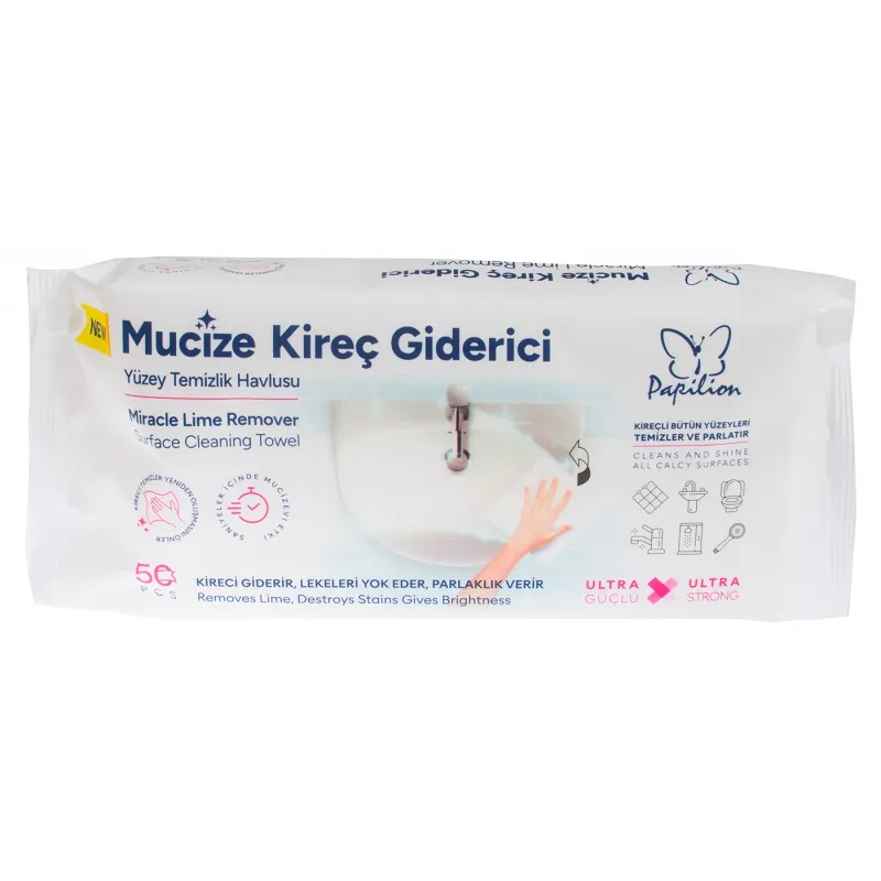 مناديل تنظيف الأسطح المعجزة لإزالة الكلس من بابيلون بعبوة 50 قطعة مصممة خصيصًا لإزالة ترسبات الكلس والجير الصلبة من مختلف الأسطح بسهولة وفعالية. تساعد هذه المناديل على تنظيف الحنفيات، الحمامات، الدش، وأسطح المطابخ، وتتركها نظيفة ولامعة بدون الحاجة إلى فرك قوي أو استخدام منظفات إضافية.