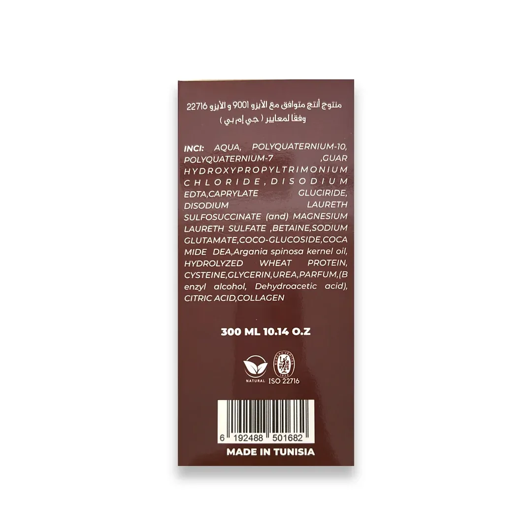 تحتوي تركيبته المتطورة على بروتينات القمح وزيت الأرغان والسيستين، التي تعمل معًا على إصلاح ألياف الشعر التالفة، وتقوية بنيته، وزيادة مرونته. تساعد بروتينات القمح في دعم إعادة بناء الشعر الضعيف، بينما يمنح زيت الأرغان تغذية عميقة ولمعانًا صحيًا، ويساهم السيستين في تقليل التكسر وتعزيز نعومة الشعر.
