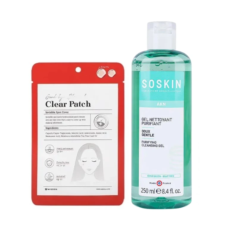 روتين كامل لمحاربة حب الشباب والتحكم في الزيوت وتحسين صفاء البشرة، يجمع بين جل التنظيف اللطيف وبقع حب الشباب ومصل النياسيناميد.