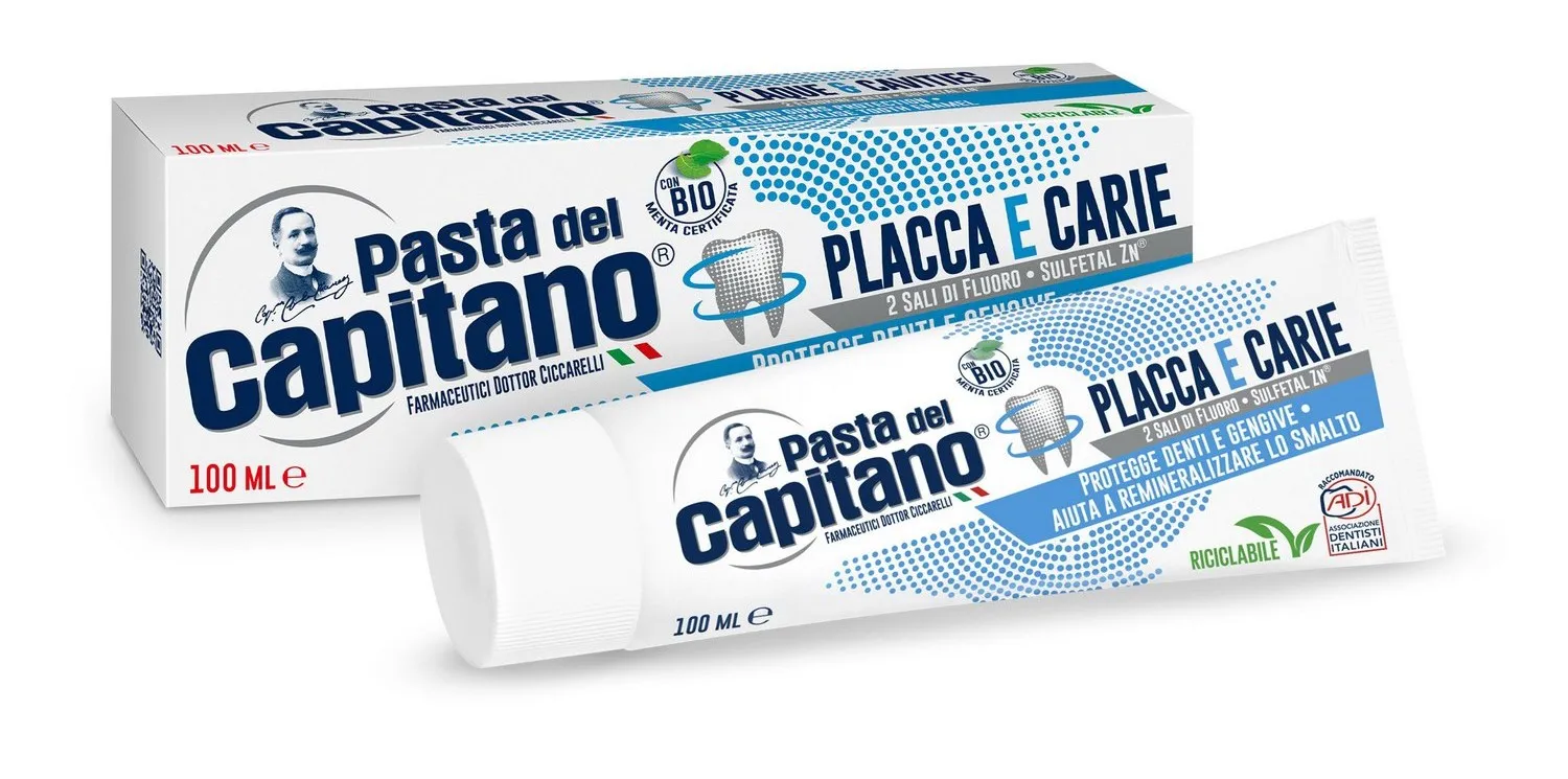 CAPITANO Plaque and Cavities Toothpaste 100ml is designed for daily protection against tooth decay and plaque buildup. Its advanced formula helps deeply clean teeth, remove plaque, and strengthen enamel, leaving your mouth clean, fresh, and protected from cavities over the long term.
