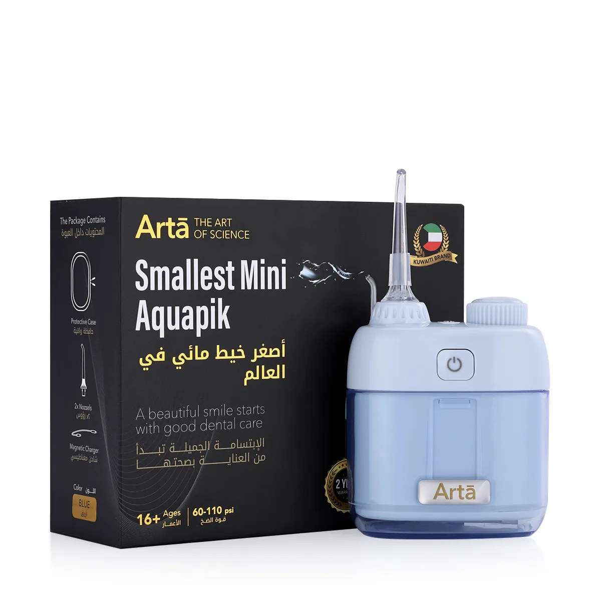 Discover the smallest portable Aquapik device from Arta, designed to deliver powerful water cleaning in a compact, easy-to-carry size. Combining high performance with a practical design, it’s the perfect choice for daily use and travel. It helps maintain fresh breath, healthy gums, and a bright smile wherever you are. Proper dental care starts with effective tools—and with this mini device, it’s easier than ever.
