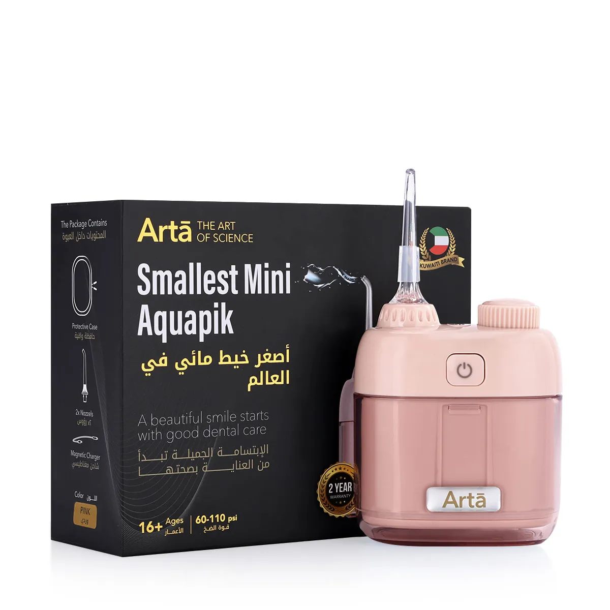 Discover the smallest portable Aquapik device from Arta, designed to deliver powerful water cleaning in a compact, easy-to-carry size. Combining high performance with a practical design, it’s the perfect choice for daily use and travel. It helps maintain fresh breath, healthy gums, and a bright smile wherever you are. Proper dental care starts with effective tools—and with this mini device, it’s easier than ever.